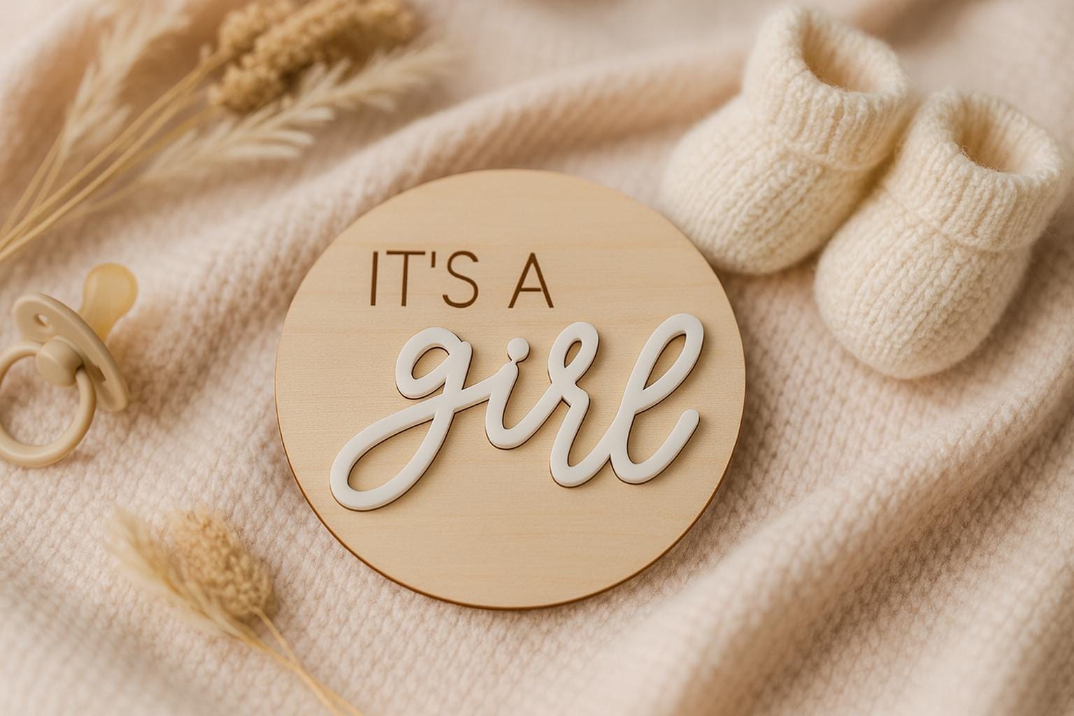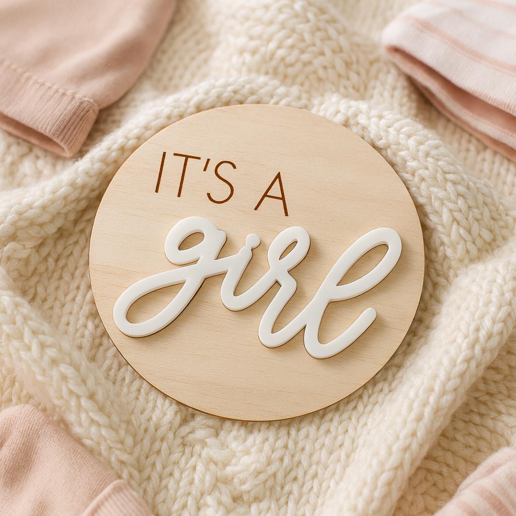 **Birth Announcement Sign: It's a Girl** – the perfect way to celebrate and share the joyous news of your new arrival! This beautifully designed photo prop is not only functional but also adds a charming touch to your newborn's first photos.